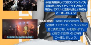 19:00スタート 「じやんぷ」 20:00スタート 「Hideki Ohnishi Band] 700円+1ドリンクオーダー